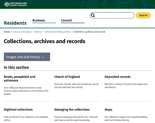- Oxfordshire County Council collections, archives and records page